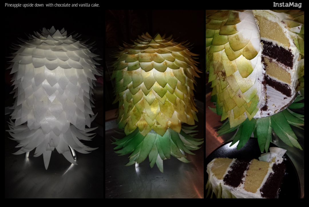 Here is the process of making the decorations for the pineapple upside down. If I planned better, I would have make the cake inside pineapple upside down cake with brown sugar frosting…yumm.
