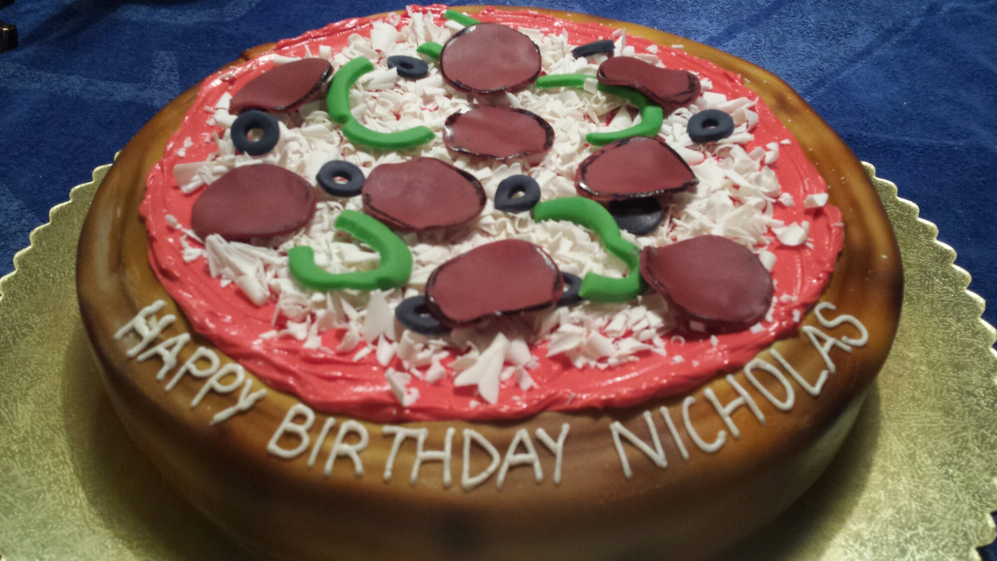 My cake for tonight is a pizza themed cake. Just throw something easy for my nephew. They seem to love pizza. Everytime we get together they order pizza, so i think the pizza cake is perfect. I remember when I made the hamburger cake for my boss and people were saying that it does not seem right. Their mind is playing trick on them..it’s a hamburger but it’s sweet as it was a cake with frosting and all. Wonder what my nephew would think about it.
