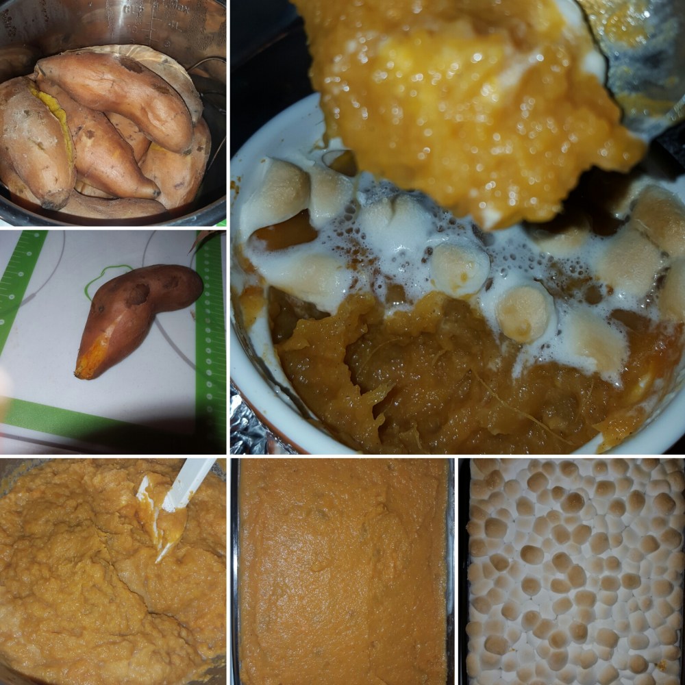 Sweet potato casserole. This one I used 8 medium size sweet potatoes. 1 cup water in the pot, then put the sweet potatoes on top of the rack that comes with my Instant Pot. Close the lid and the vent. Press manual function 12 minutes and walk away. Note to my self 10 minutes should be OK for next time. Once it beeped, release the pressure, use extra caution on this process as always. The steam coming out from the vent is extremely hot. Well take the sweet potatoes out. Peel it. Oh and I literally peel this like flipping pages on a book. That easy! Then mashed them or you can take out your other kitchen warrior, the kitchen aid mixer. I was to lazy, I just mashed manually.. the heck I need my arm exercise anyway. Ha! it was so soft I barely burn the calories from my homemade yogurt I had for breakfast.