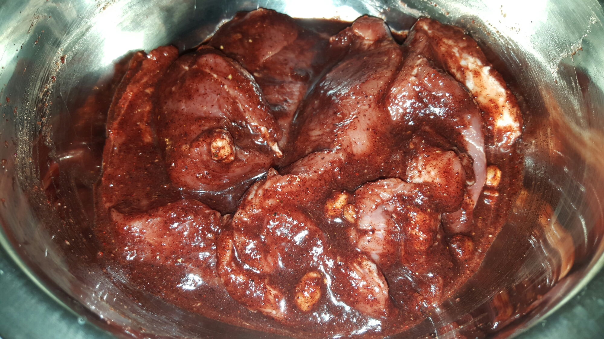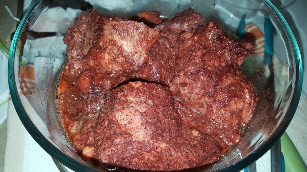 Marinade the pork with the sauce, covered with plastic wrap and let sit in the fridge for 2 hours or overnight.
