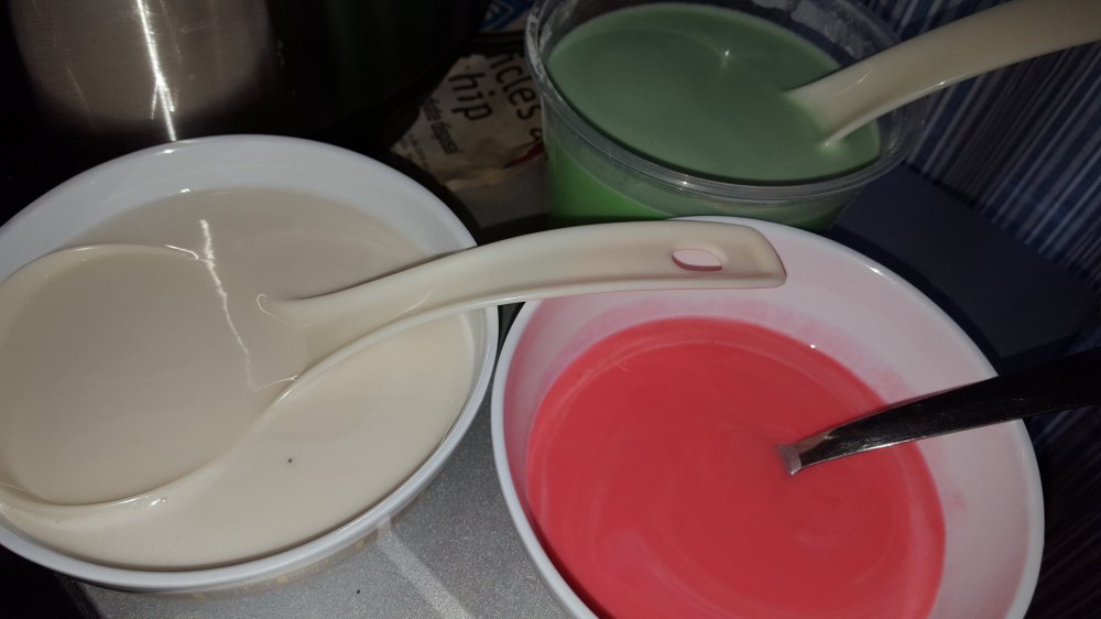 I mix all ingredients in my vitamix so that I don’t have to whipped them by hand. And steamed them layer by layer in my Instant Pot. 3 minutes per layer. I tried using high pressure 3 minutes it was looking like a bubble when I open the lid. So I decided to use the steaming function, but changed to a sautee method and using a rack to put the pan and glass lid covered with kitchen towel so that nothing will drip on the cake. I made it in 3 colors, white, green and the top layer is red. Just like I remember this cake growing up.