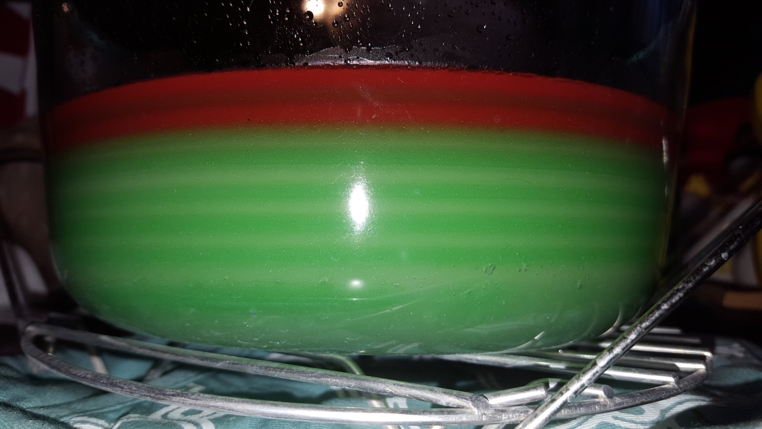 I mix all ingredients in my vitamix so that I don’t have to whipped them by hand. And steamed them layer by layer in my Instant Pot. 3 minutes per layer. I tried using high pressure 3 minutes it was looking like a bubble when I open the lid. So I decided to use the steaming function, but changed to a sautee method and using a rack to put the pan and glass lid covered with kitchen towel so that nothing will drip on the cake. I made it in 3 colors, white, green and the top layer is red. Just like I remember this cake growing up.