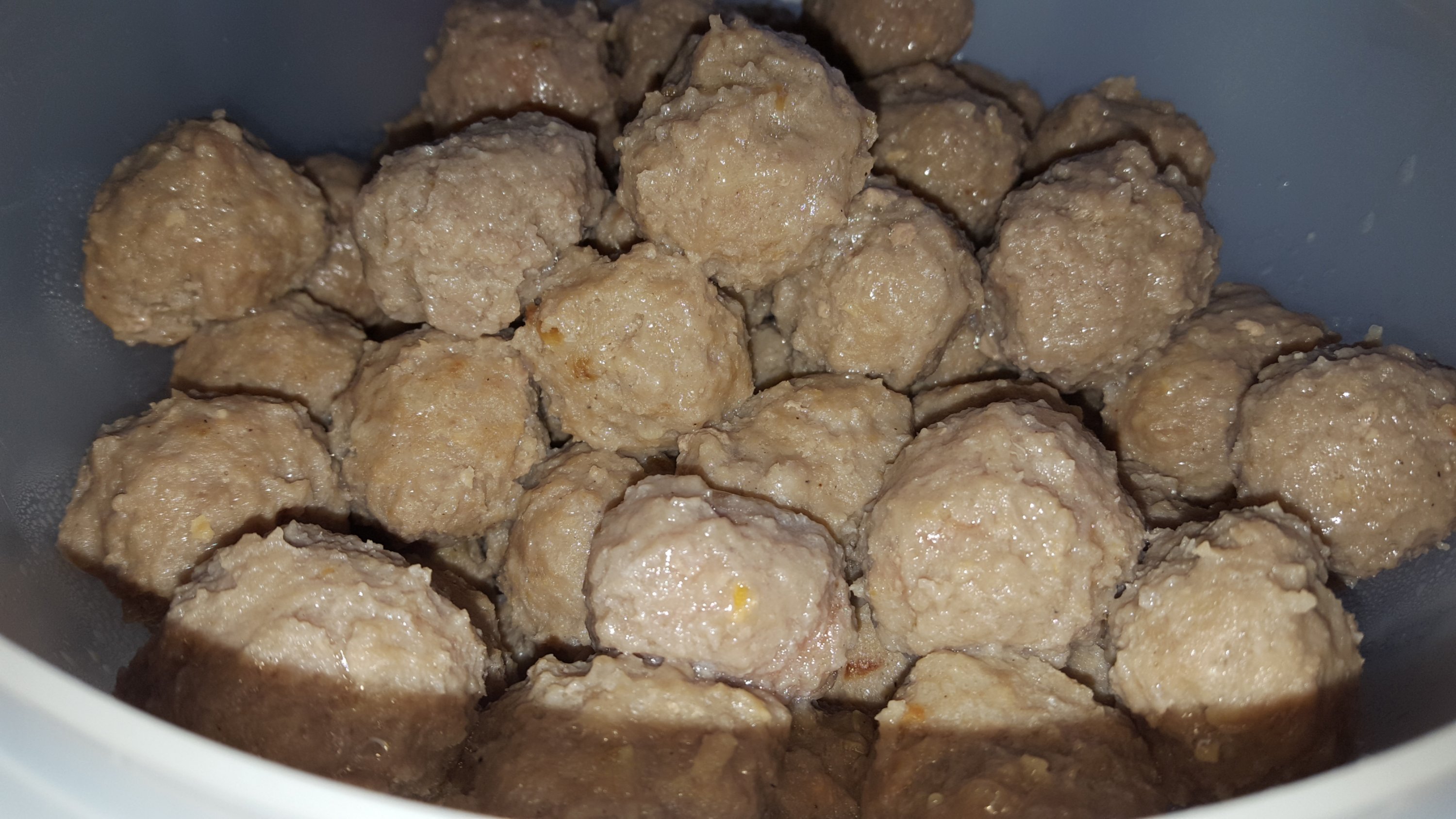 Here is the meatballs. It is done when it start to float, give it a couple more minutes before strained them. At this point, they can be serve with broth and noodles or freeze for later use. Since I have made this last week, I am going to juat freeze them.